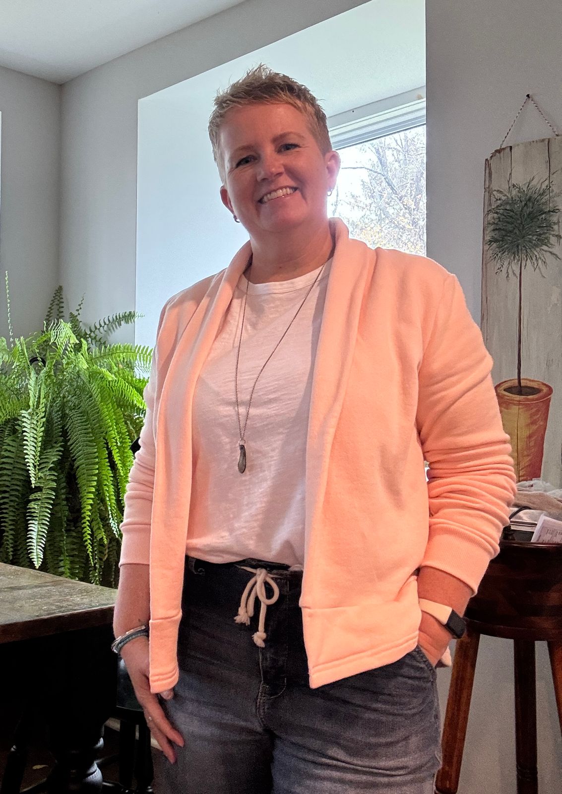 I LOVE this cardigan. Perfect length for someone shorter, I’m five feet tall. The soft peach colour is great for a winter pick me up. I may need another colour!